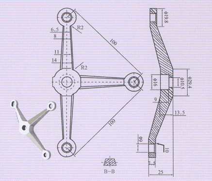 栏杆专用-100型三爪-驳接爪-PJ1002详细介绍: