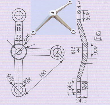 >> 栏杆专用-160型三爪-驳接爪-PJ1014